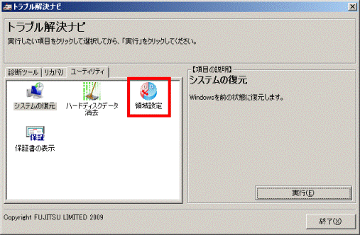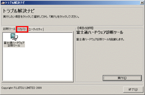 - トラブル解決ナビの「リカバリ」タブをクリックします。