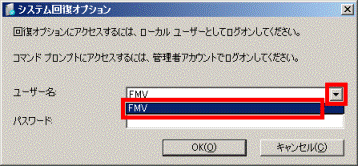 「ユーザー名」の「▼」ボタンをクリックし、表示される一覧から、お使いの機種で設定しているユーザーアカウントをクリックします。