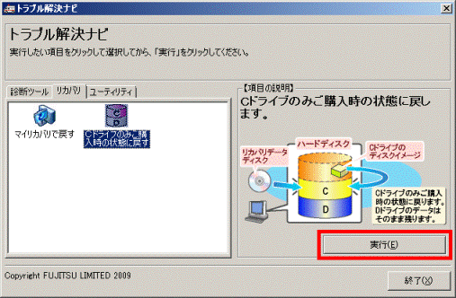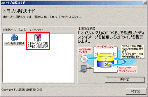 - 「Cドライブのみご購入時の状態に戻す」アイコンをクリックします。