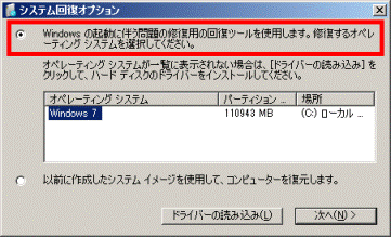 - 「Windowsの起動に伴う問題の修復用の回復ツールを使用します。」と表示されます。