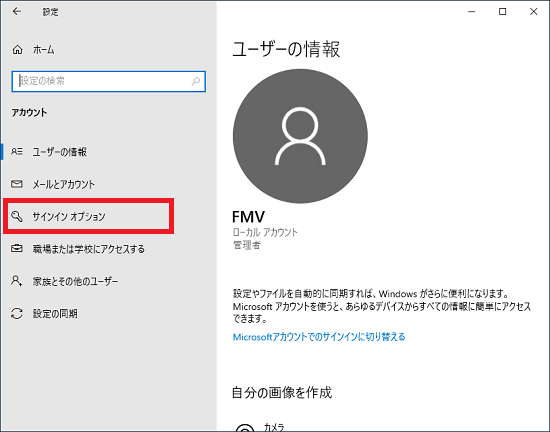 ローカルアカウントにパスワードを設定している場合は、アカウントのサインインオプションからセキュリティの質問を設定または変更します。