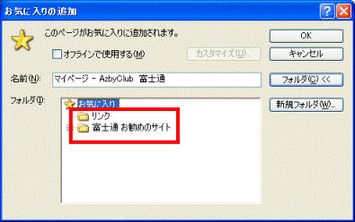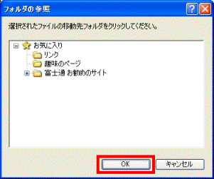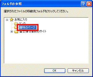 表示されたフォルダーの一覧から、お好みのフォルダーをクリックして、「OK」ボタンをクリックすると、クリックしたフォルダーへ追加できます。