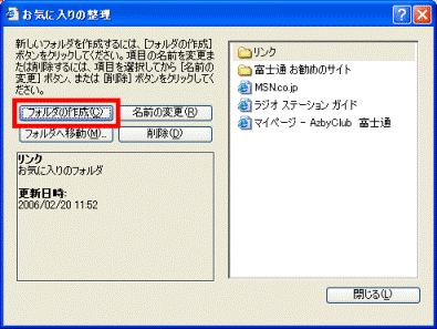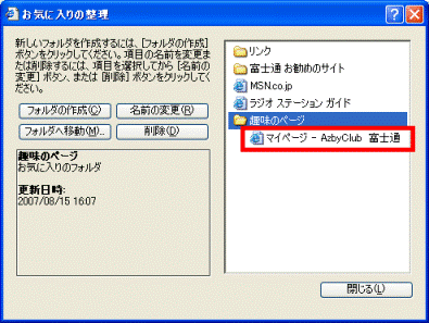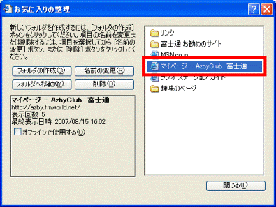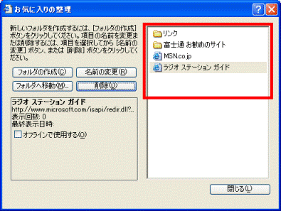 - 「閉じる」ボタンをクリックし、「お気に入りの整理」を閉じます。