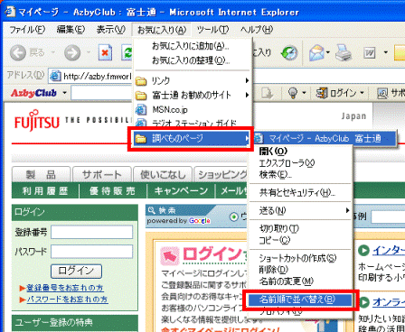 Internet Explorer 6で、ホームページをお気に入りに追加したり、お気に入りを整理する方法は、次のとおりです。