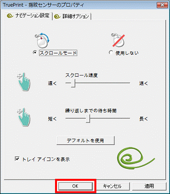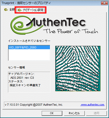 - 「Trueprint - 指紋センサーのプロパティ」が表示されます。