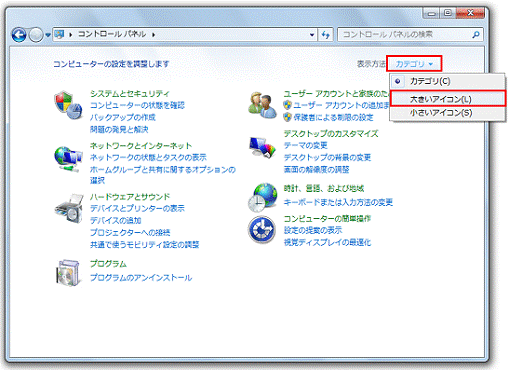 お使いのOSに応じた手順で、コントロールパネルの表示方法を変更します。- Windows 7