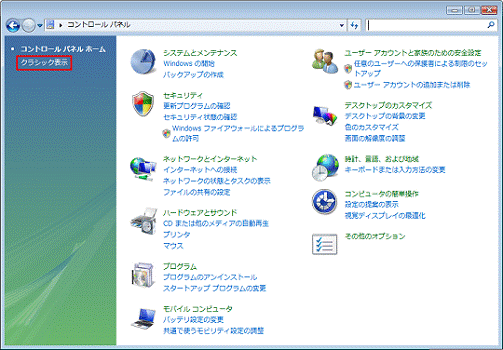 画面の左側にある「クラシック表示」をクリックします。