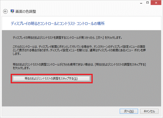 「明るさおよびコントラストの調整をスキップする」ボタンをクリックします。