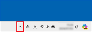 - タスクバーの端(システムトレイ、または通知領域)にある「