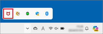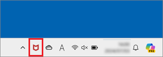 - タスクバーにマカフィー リブセーフのアイコンがある場合は、タスクバーのアイコンを右クリックします。