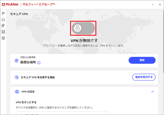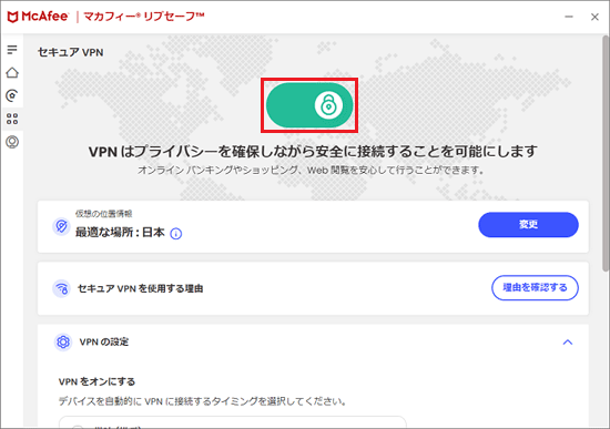 [マカフィー リブセーフ] マカフィー VPNを停止する方法を教えてください。