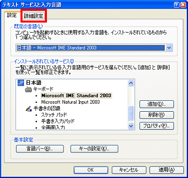 Windows XPは、「詳細なテキストサービス」を無効にすることで、日本語が入力できる場合があります。