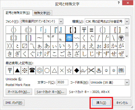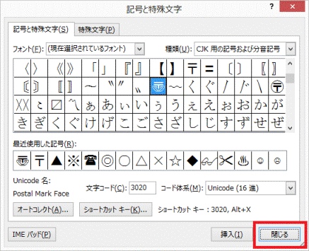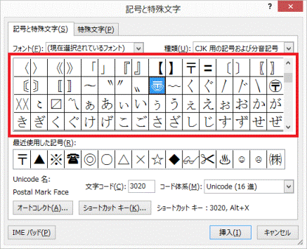 - 一覧から、目的の記号、または特殊文字をクリックします。