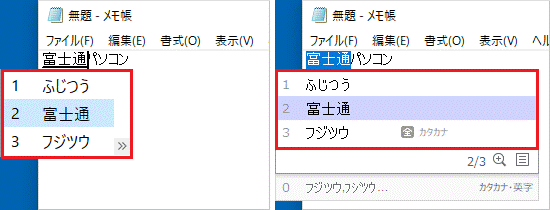 - 【変換】キーを押すと、変換の候補が表示されます。
