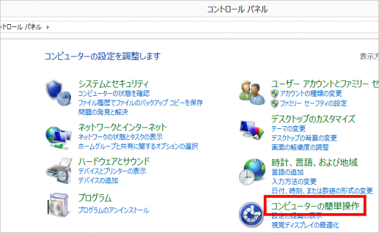 表示方法が「大きいアイコン」または「小さいアイコン」の場合は、「コンピューターの簡単操作センター」アイコンをクリックし、手順7.に進みます。