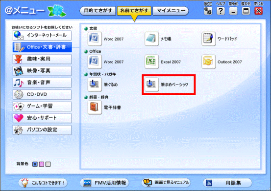 筆まめを使用しようとしましたが、「すべてのプログラム」に筆まめが表示されていません。