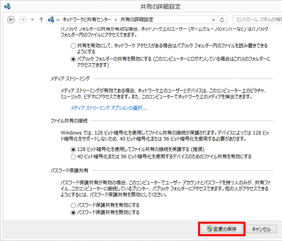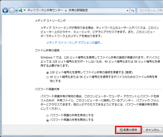 - 「パスワード保護の共有を無効にする」をクリックします。