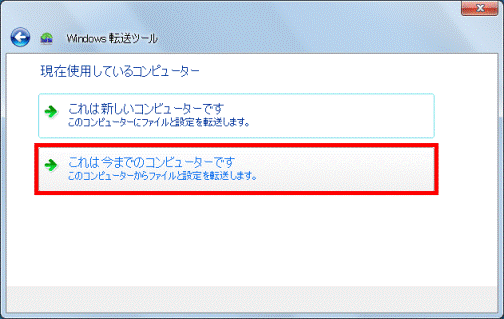 - 「項目を新しいコンピューターに転送する方法を選択してください」と表示されます。