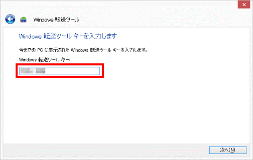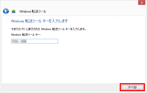 Windows 転送ツールキーは、新しいパソコンに入力する必要があります。