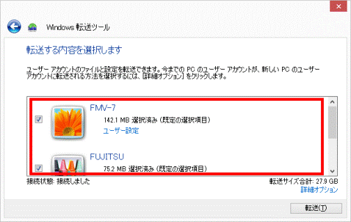 新しいパソコンと古いパソコンのアイコンが表示されていることを確認します。