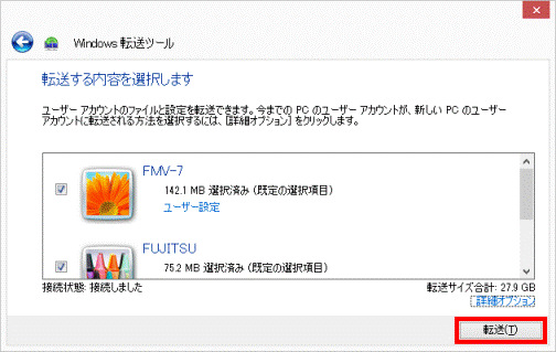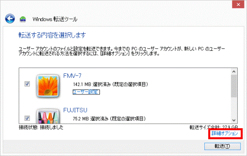 古いパソコンと新しいパソコンで、Windows 転送ツールを実行します。