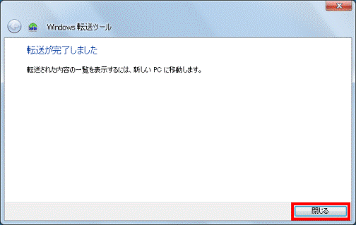 - 「×」ボタンをクリックして、「Windows 転送ツール レポート」を閉じます。