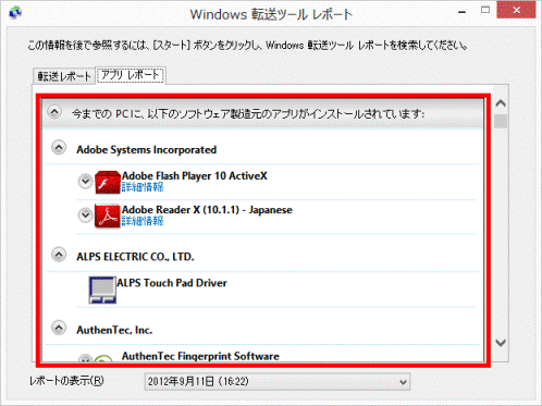 - パソコンが再起動した後に、Windows 転送ツールで移行した内容を確認する場合は、「Windows 転送ツール レポート」を実行します。