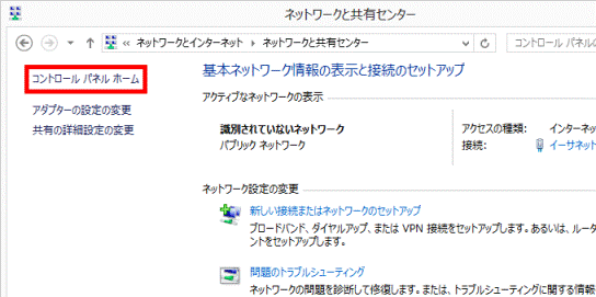 画面左上の「コントロールパネル ホーム」をクリックします。