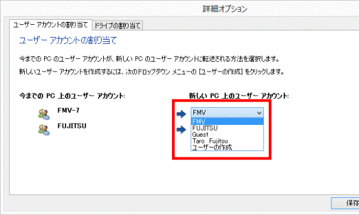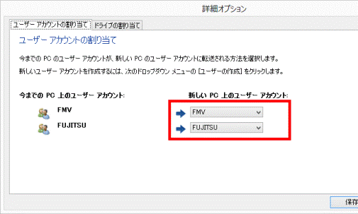 古いパソコンのユーザーアカウントを新しいパソコンのユーザーアカウントに割り当てます。