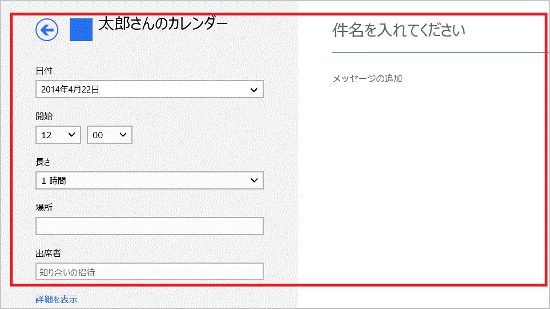 日付や時間をクリックして表示される入力画面からも、予定を登録できます。