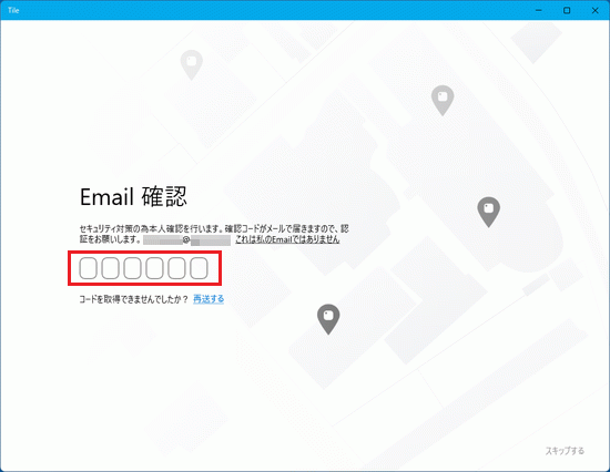 メールを受信できるアプリを起動して、「Tileの登録内容をご確認ください」のメールを開きます。 - メール本文に記載されている確認コードを、「Email確認」画面に入力します。