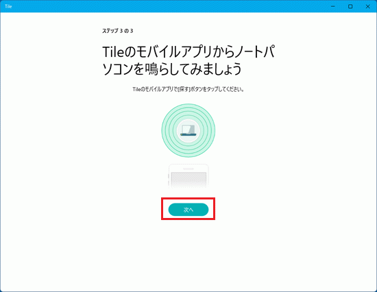 - 「Tileのモバイルアプリからノートパソコンを鳴らしてみましょう」と表示されます。