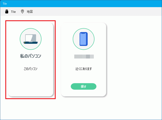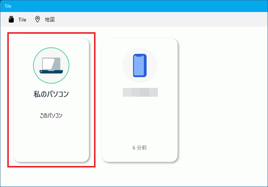 「スタート」ボタン→「すべてのアプリ」→「Tile」の順にクリックします。 - Tileを有効化したパソコンが表示されていることを確認します。