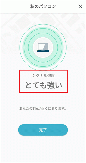 アドバイスパソコンから離れすぎると「このTileは接続圏内にありません」と表示されます。