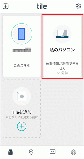 また、Tileアプリでは、スマートフォンの場所を表示することもできます。