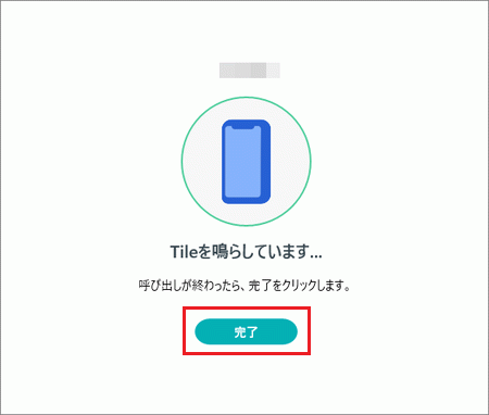 - 「Tileを鳴らしています」と表示され、スマートフォンから音が鳴ります。