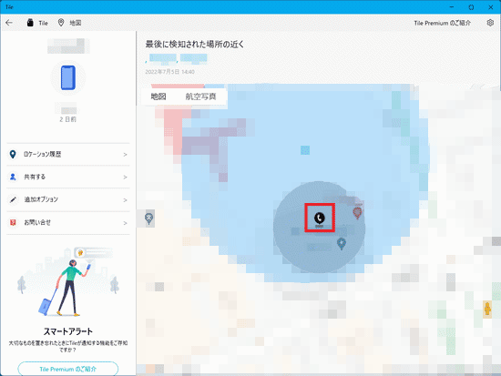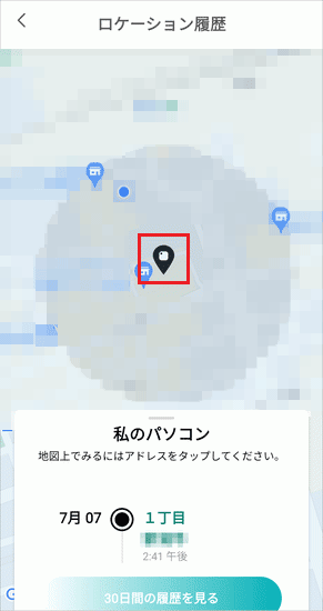 - 地図上に、スマートフォンを最後に検知した位置が表示されます。