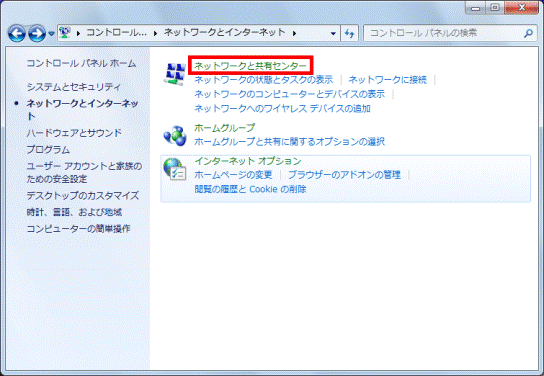 アドバイス「ネットワークとインターネット」がない場合は、「ネットワークと共有センター」アイコンをクリックして、手順4.へ進みます。