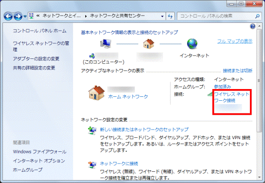 ここでは、「ワイヤレス ネットワーク接続」をクリックします。