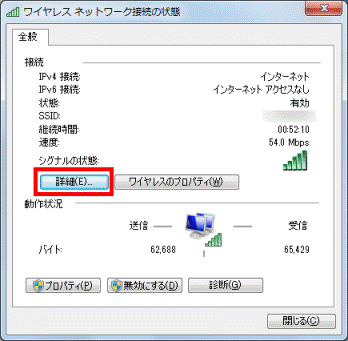 - 「ワイヤレスネットワーク接続の状態」が表示されます。