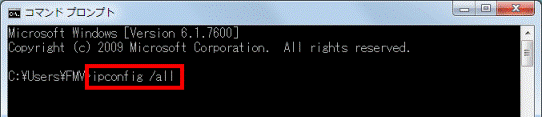 アドバイス「ipconfig」と「/all」の間には、半角で【空白(スペース)】キーを一回押します。