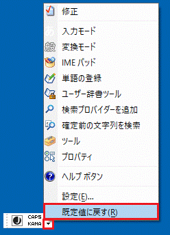 - 言語バーの「オプション」ボタンをクリックし、表示されるメニューから「既定値に戻す」をクリックします。