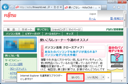 - 「Internet Explorerを通常使うブラウザーにしますか?」と表示されたら、「はい」ボタンをクリックします。