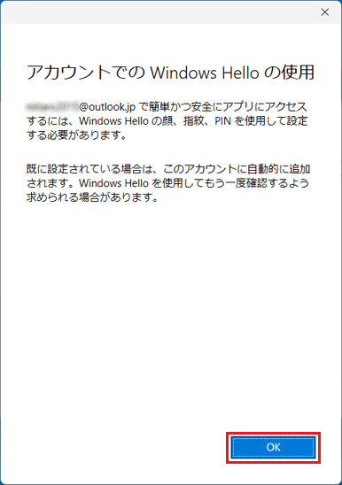 - 「アカウントでの Windows Hello の使用」と表示されます。