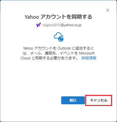 重要「@yahoo.co.jp」のアドレスをお使いの場合、「続行」ボタンをクリックしてもアカウントを設定できないことがあります。