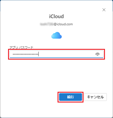 アプリ用パスワードを入力し、「続行」ボタンをクリックします。