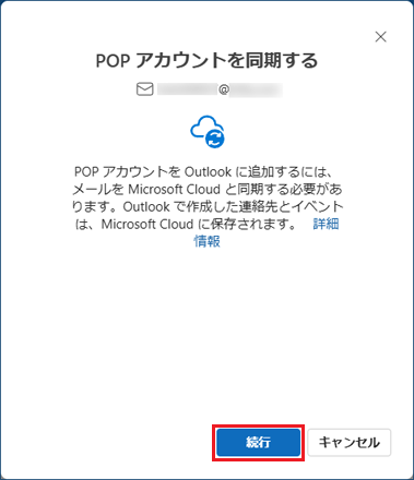 (「POPアカウントを同期する」と表示された場合の例) - 表示された画面によって手順が異なります。