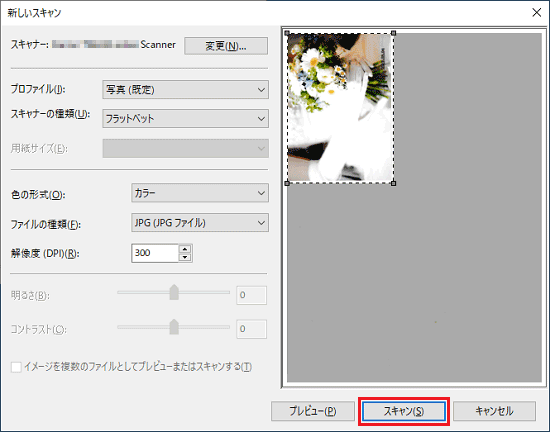 - 設定や範囲に問題がなければ、「スキャン」ボタンをクリックします。