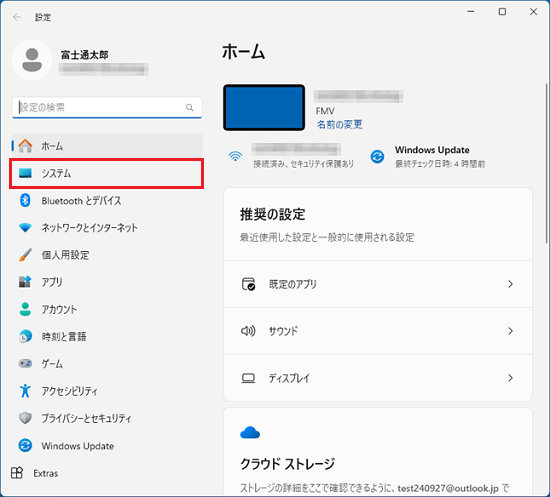 アドバイス「システム」が表示されていない場合は、「設定」の左にある「≡」(ナビゲーションを開く)→「システム」の順にクリックします。