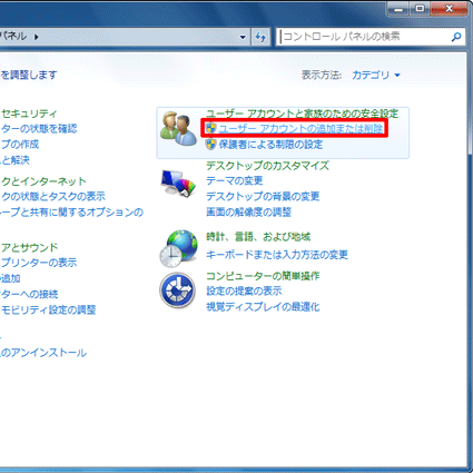 - 「ユーザーアカウントの追加または削除」をクリックします。
